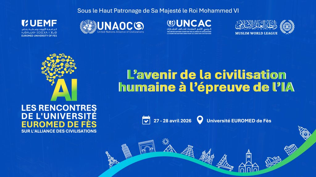 Placées sous le Haut Patronage de Sa Majesté le Roi Mohammed VI, les Rencontres de l’Université EUROMED de Fès sur l’Alliance des Civilisations, organisées les 27 et 28 avril 2026 autour du thème : « L’avenir de la civilisation humaine à l’épreuve de l’intelligence artificielle », constituent un événement international de premier plan, réunissant des personnalités académiques, scientifiques et diplomatiques de haut rang issues issues des cinq continents et plus de 1400 jeunes. Les différentes délégations représentent plus de 70 pays. Organisé par l’Université EUROMED de Fès, la Chaire des Nations Unies pour l’Alliance des Civilisations, en partenariat avec le Muslim World League et l’United Nations Alliance of Civilizations (l’UNAOC) des Nations Unies, cet événement revêt une dimension stratégique de dialogue et de réflexion sur les transformations majeures induites par l’intelligence artificielle (IA). Le programme de ces Rencontres fera état des nouvelles innovations dans le domaine de l’IA et leur impact sur le développement technologique des pays. Il abordera également les aspects sociétaux et de gouvernance en mettant l’accent sur les principes d’éthique, de responsabilité et de confiance. Les débats réuniront des experts et des chercheurs autour des cadres normatifs, des mécanismes de régulation et des modèles de coopération internationale nécessaires pour encadrer le développement de l’IA dans un environnement global en mutation au service de l’homme. Les travaux porteront également sur les applications concrètes de l’intelligence artificielle dans des secteurs stratégiques, notamment la santé, ainsi que sur ses implications éthiques, sociales et culturelles. Une attention particulière sera accordée aux interactions entre innovation technologique et valeurs humaines, à la question de la confiance dans les systèmes intelligents, ainsi qu’aux enjeux liés à la cybersécurité, au développement économique et au vivre ensemble dans un monde de plus en plus numérisé. Dans un contexte mondial marqué par l’accélération des mutations technologiques, les défis géopolitiques et les transformations profondes des sociétés, ce forum vise à promouvoir une approche holistique et éthique de l’intelligence artificielle, conciliant innovation, développement durable et respect des valeurs universelles. Le programme prévoit une séance d’ouverture de haut niveau, avec la participation de responsables gouvernementaux, de décideurs internationaux et de personnalités de renom issus des cinq continents, suivie de plusieurs sessions plénières et parallèles thématiques. Ces Rencontres constituent donc une plateforme privilégiée pour repenser les interactions entre technologie et société, renforcer le dialogue entre les civilisations et contribuer à l’émergence de réponses collectives aux défis globaux.
